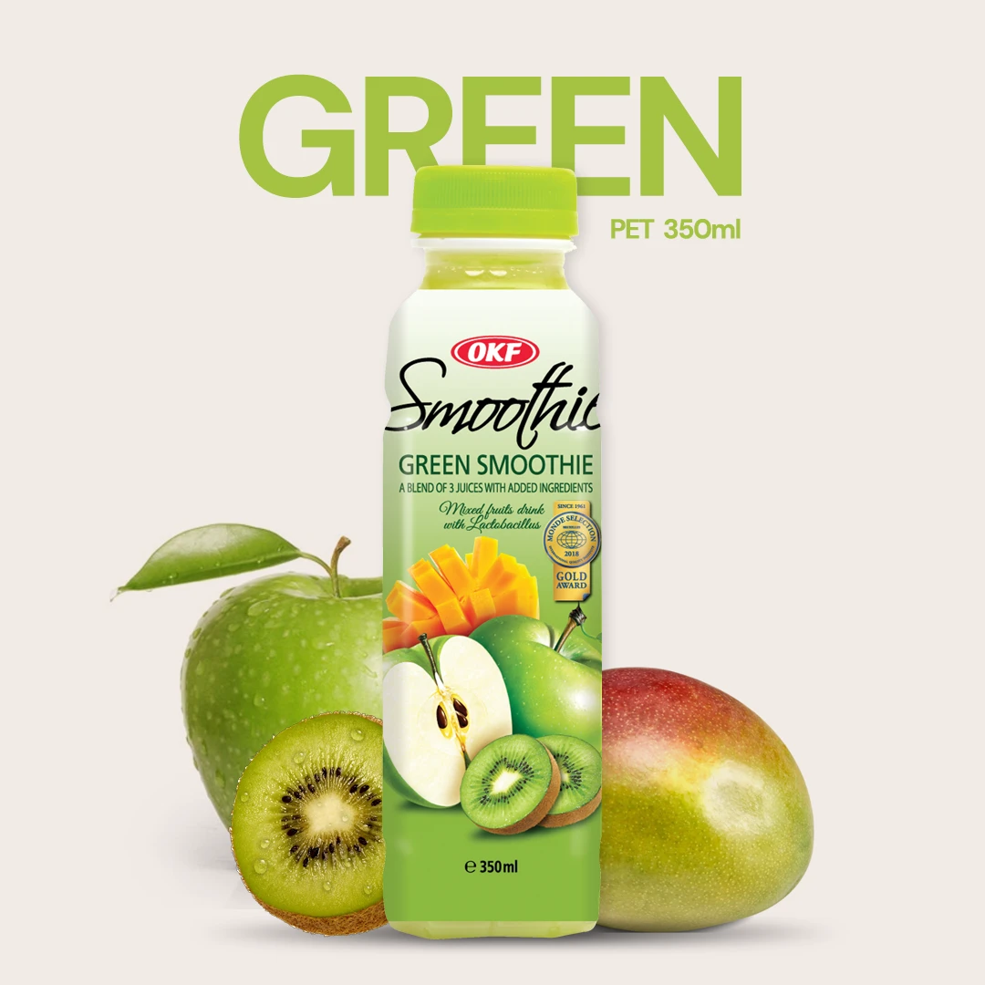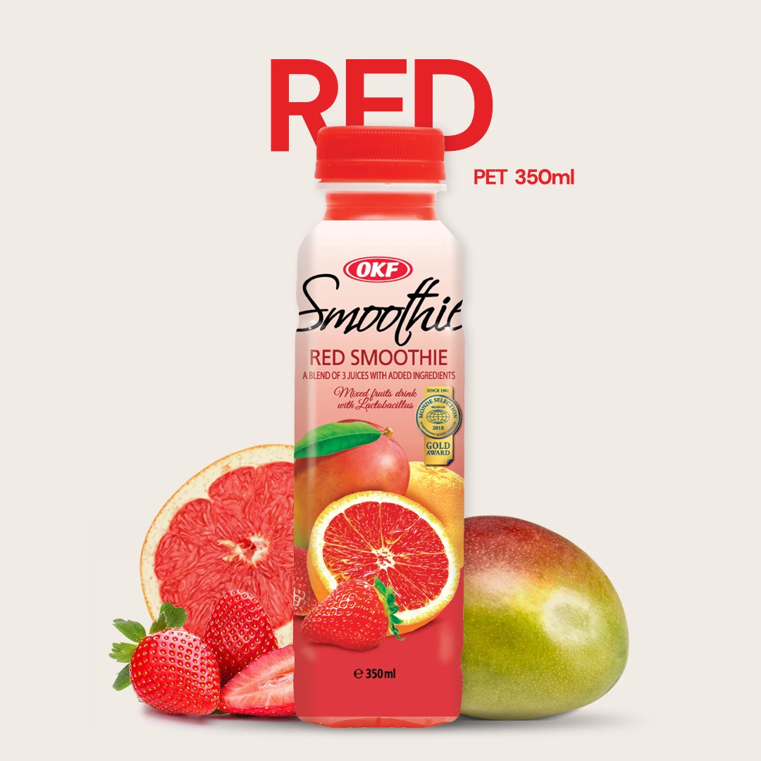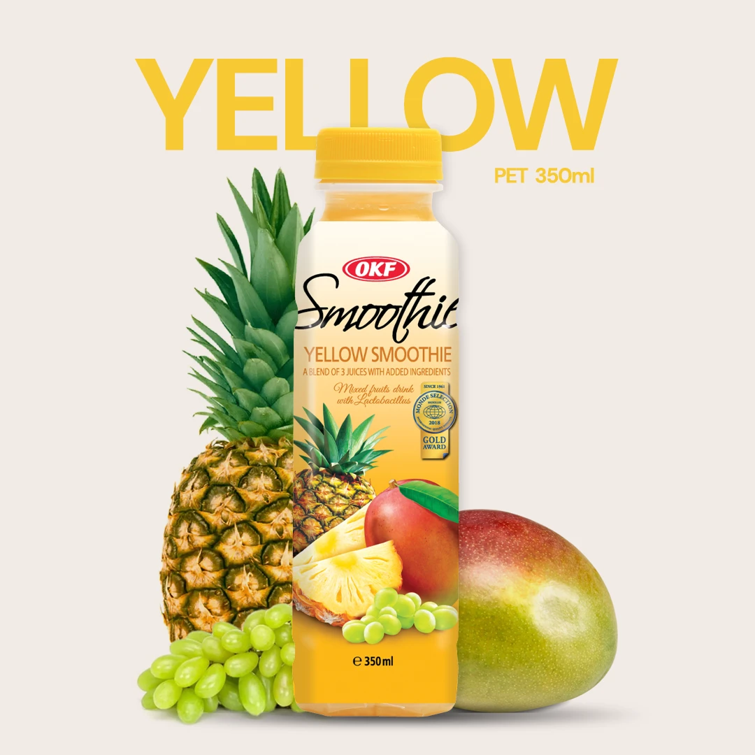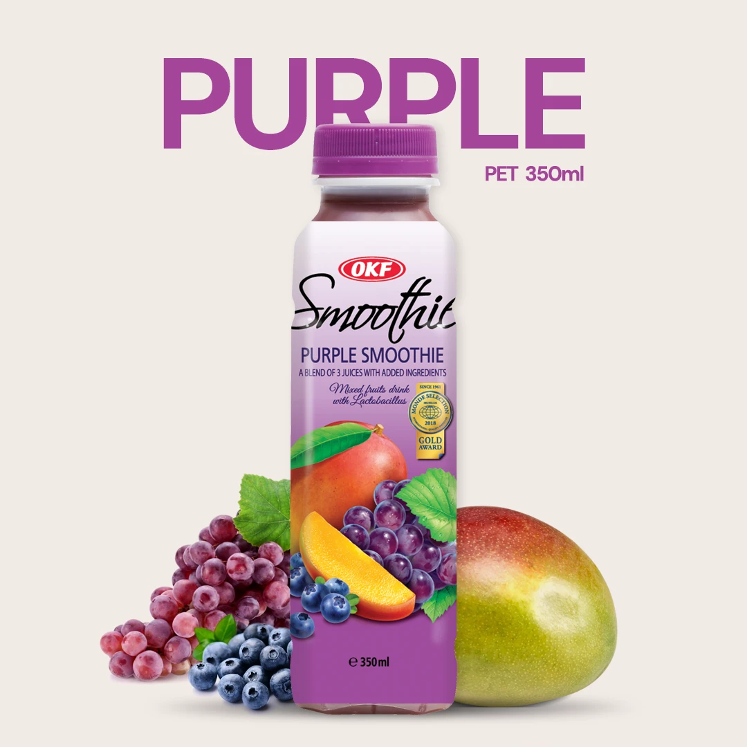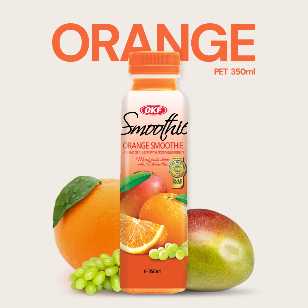 A thick and creamy beverage, OKF Smoothie is a blended combination of three fruits. This smoothie made from mixed fruit juices contains Lactobacillus, a human-friendly microorganism, making it a probiotic and healthy drink. The product also contains a small amount of skim milk.